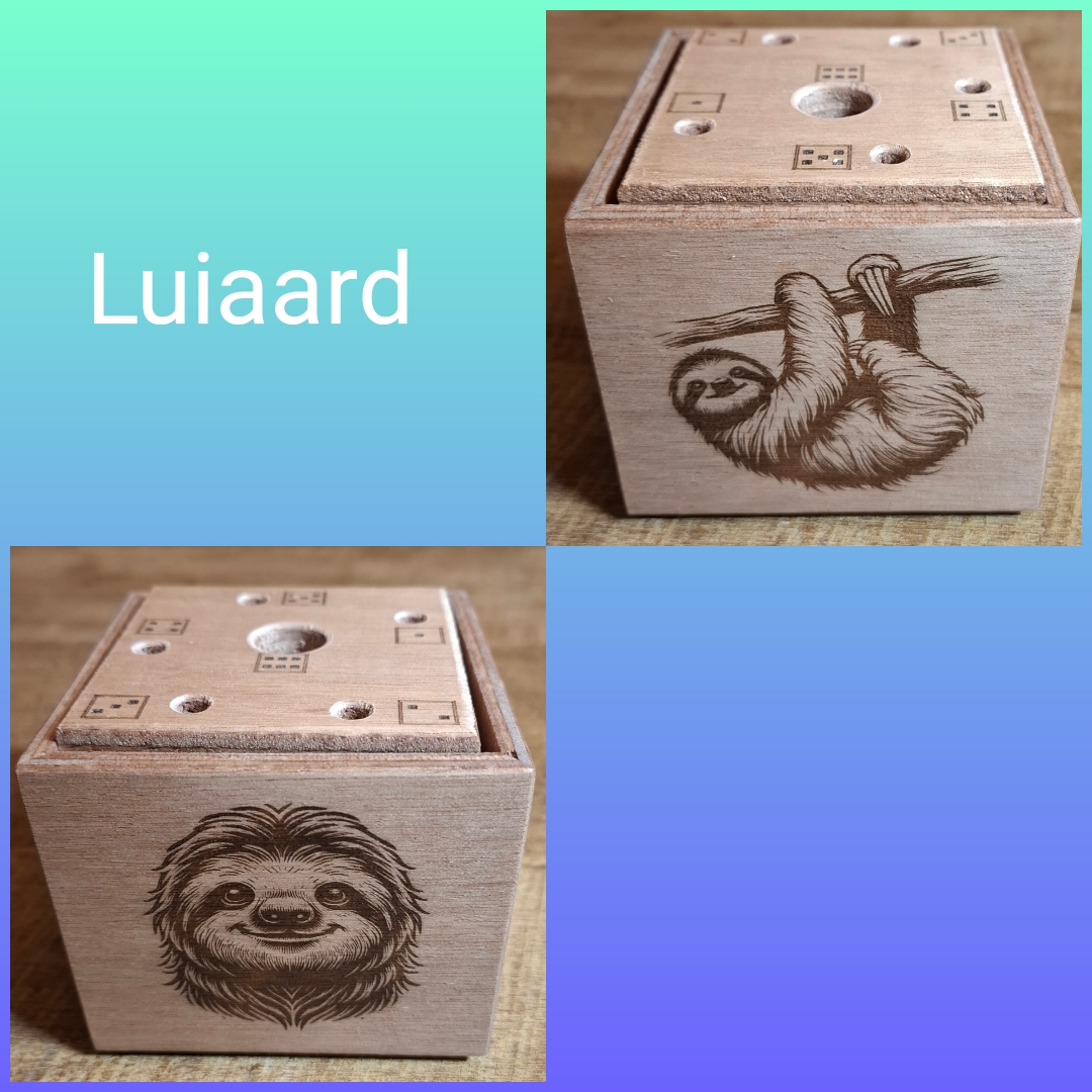 De mormelpot wordt geleverd met ongeveer 40 deuvels, dobbelsteen, spelbeschrijving en bewaarzakje.